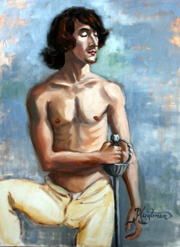 IMG_4971 ← Previous Next → D’Artagnan 9×12 3 Hour Oil Sketch boy with sword, musketeer, D’Artagnan, oil painting of nude with sword