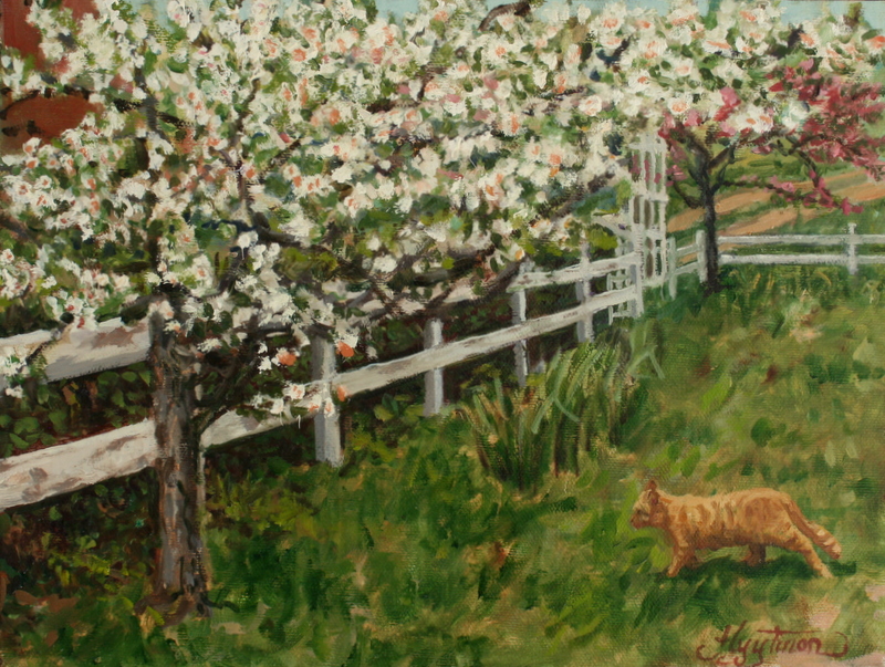 IMG_4815 ← Previous Next → The Ginger Cat 9×12 oil painting of a flowering Sargent Crab, fence and cat